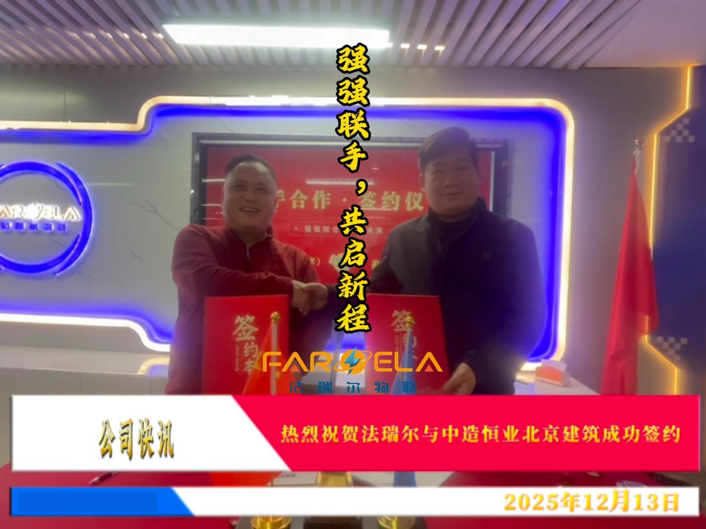 2025年12月13日,法瑞尔智慧安全用电与中造恒业北京建筑成功签约,达成战略合作。双方将深度融合智慧用电技术与现代建筑施工,通过先进物联网与大数据技术,为建筑领域提供全方位用电安全解决方案。此次携手旨在打造更智能、更安全的用电环境,共同推动行业向数字化、智能化转型升级,为新安全高质量发展注入新动能。